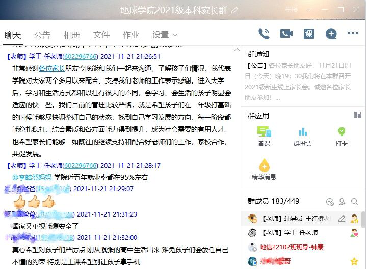 借助QQ群打造家校育人平台是金碧娱乐场 践行“三全育人”的重要举措,新生家长会也是金碧娱乐场 长期坚持的优良传统。通过让家长们全面了解金碧 、知晓孩子在大学的表现,增进金碧 和家长间的沟通和理解,形成家校联手的协同关系,共同助力学生成长成才。