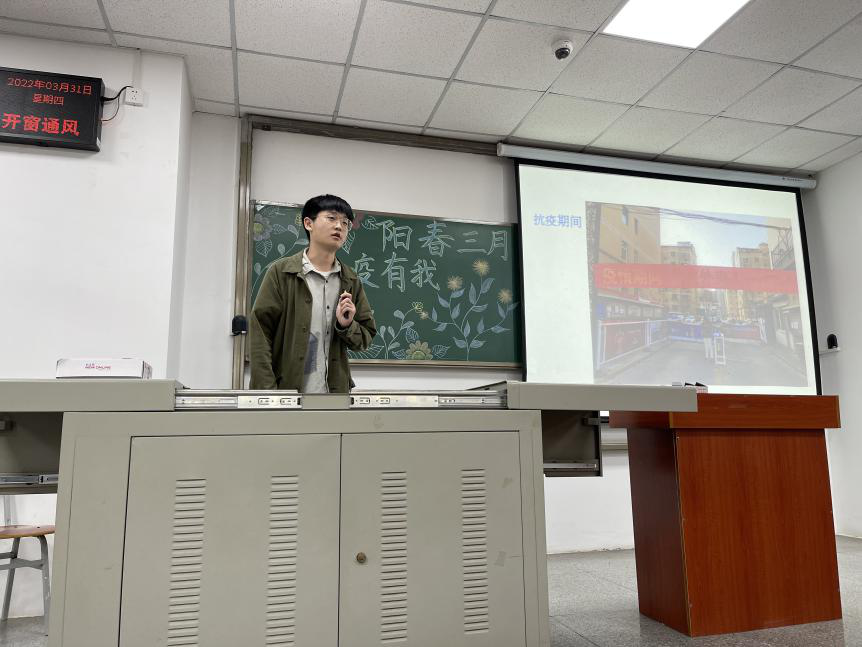 地信22001班的黄汉臣分享了去年年初家乡石家庄疫情期间,自己和许多同龄志愿者一起,主动担起为小区居民运送物资的任务的经历。从50斤一袋的大米,到小小的一包纸巾,“黄汉臣们”每天不停的往返在小区的各楼栋间,汗流浃背、混身酸痛是常有的事,但大家依旧每天准时出现在居民的视线中。黄汉臣回忆自己入学至今,一直在班级和学生会任职,学生干部经历增强了自己的责任感和服务的意识,看到院网站上报道的学长学姐抗疫志愿者事迹,打心里深深的敬佩并决心要向他们学习,因此寒假回家后立即加入了志愿者队伍。