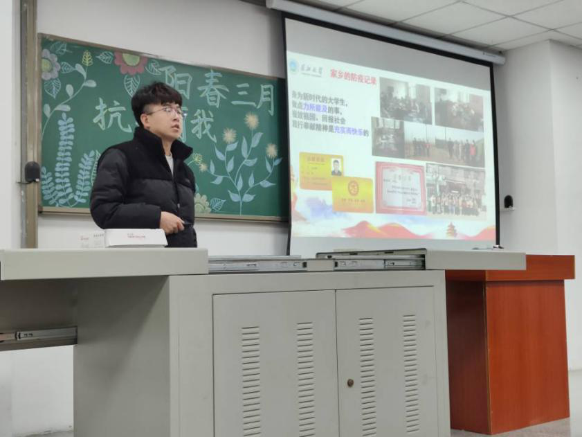 (通讯员 贾凡琛)为了加强金碧娱乐场 学生对无私奉献雷锋精神的理解,弘扬伟大抗疫精神,鼓励大家向身边的“活雷锋”学习,并进一步增强同学们的疫情防控意识。金碧娱乐场 于3月31日下午4点半在武教B106,举办以“阳春三月,抗疫有我”为主题的抗疫精神宣讲活动,五位学生抗疫志愿者代表分享了自己的抗疫的经历与感悟。分团委书记郭霖老师及全院入党积极分子参会。