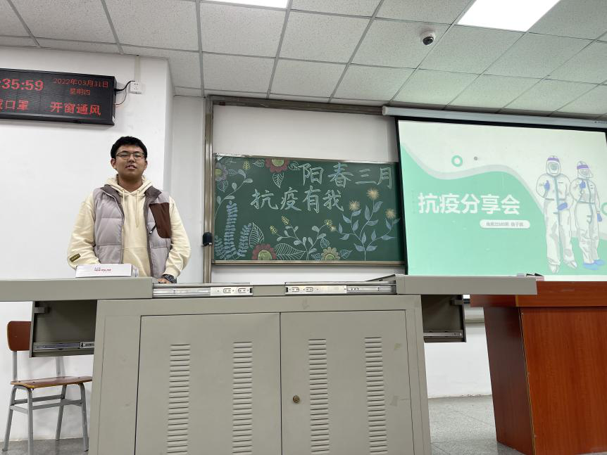 地质22103班的徐子淇同学分享了抗疫志愿者的日常和做志愿者期间的小故事。凌晨4点半起床,经过消杀、换防护服、准备核酸物资等程序,6点准时到岗维持核酸检测现场秩序,一站就是9个小时……这些每日的重复工作让他体会到了做志愿者的辛苦,更体会到了医护人员的艰辛。“别碰我身份证,你们脏!”当身边的志愿者被做核酸的居民“嫌弃”时,身边同事的一句“我们不是脏,我们只是站在你们前面,为大家挡住了病毒”足以化解大家心中的委屈。