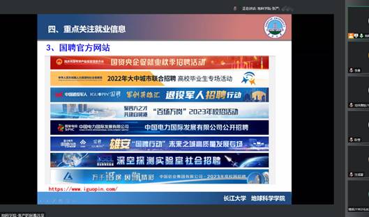 为扩展毕业生视野,协助毕业生获取更多就业信息,就业专干张严还介绍了长江大学就业信息网、国家大学生就业服务平台、国聘官方网站等招聘网站。