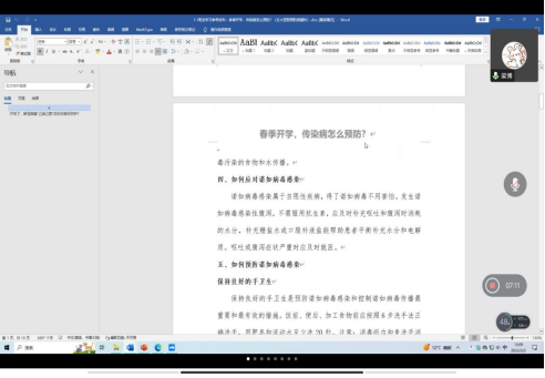面对更加宽松的社会环境,老师们首先带领同学们回顾了三年伟大抗疫斗争,引导大家正确认识全国防疫政策调整的意义,赞扬了大学生们对疫情防控所作出的重要贡献。围绕春季传染病预防与处理问题,老师们讲解了当下流行“诺如病毒”的性质、传播趋势,以及在日常生活中如何做好个人防护提出针对性建议。