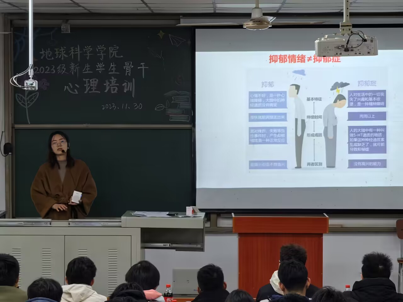 (通讯员:朱永康摄像:宁佳怡杜民意)11月30日14:00,金碧娱乐场 全体23级新生学生骨干齐聚于武教B108,学习“大学生常见心理问题与应对”,心理专干王红桥老师担任主讲。