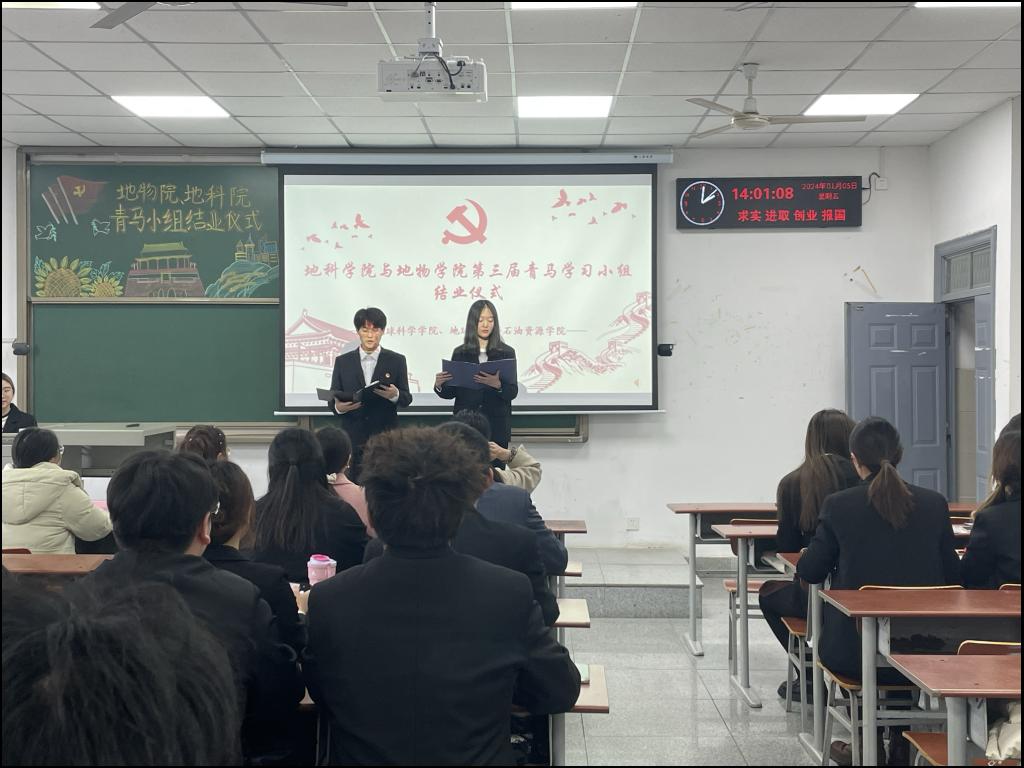 (通讯员郭霖孙梦琪王晓晖田世杰)为进一步促进金碧 间青年小组的交流与学习,1月5日14时,金碧娱乐场 与地球物理与石油资源金碧 联合举办的第三期青年马克思主义学习小组结业仪式在武教A-106顺利举行。地物金碧 团委书记叶丽珣和学工办游菁老师,金碧娱乐场 团委书记郭霖和学工办姚佳老师参加活动。