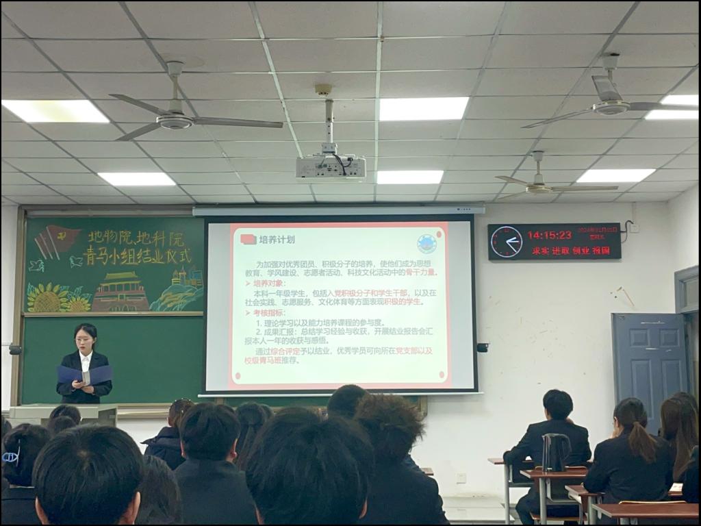 接下来,地物金碧 青马学习小组成员代表邓佳琪和李瀚霖也汇报了自己一年的学习情况。邓佳琪真诚讲述了在青马学习小组参与各类活后的所思、所感、所悟和所获。李瀚霖通过一段简短的视频,回顾了青马学习小组的集体活动,并对培养过青马小组的领导、老师和学长学姐表示感谢。他说一年的学习让小组成员不仅对马克思主义有了更深入的理解,还深刻体会到了青年的使命。