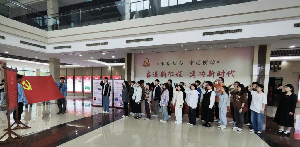 这次参观学习让党员同志们更加深刻地认识到自身的责任和使命,激发了爱党爱国的热情,坚定了为党的事业奋斗终生的决心。最后全体成员佩戴党徽,在研究生第三党支部副书记韩奎奎的带领下,面向鲜红的党旗重温入党誓词。
