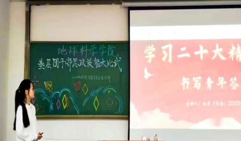 在激烈的角逐中,团支书们展现了丰富的党团知识和自信的精神风貌。地质QX231支部团支书何一鸣呼吁我们立足文化自信,融汇红色基因;地信22202支部团支书史晓岩勤于思索、与青年一同答时代问;地质(资源)22202支部团支书孙梦琪号召各位同学传承五四薪火,争做有为青年等。