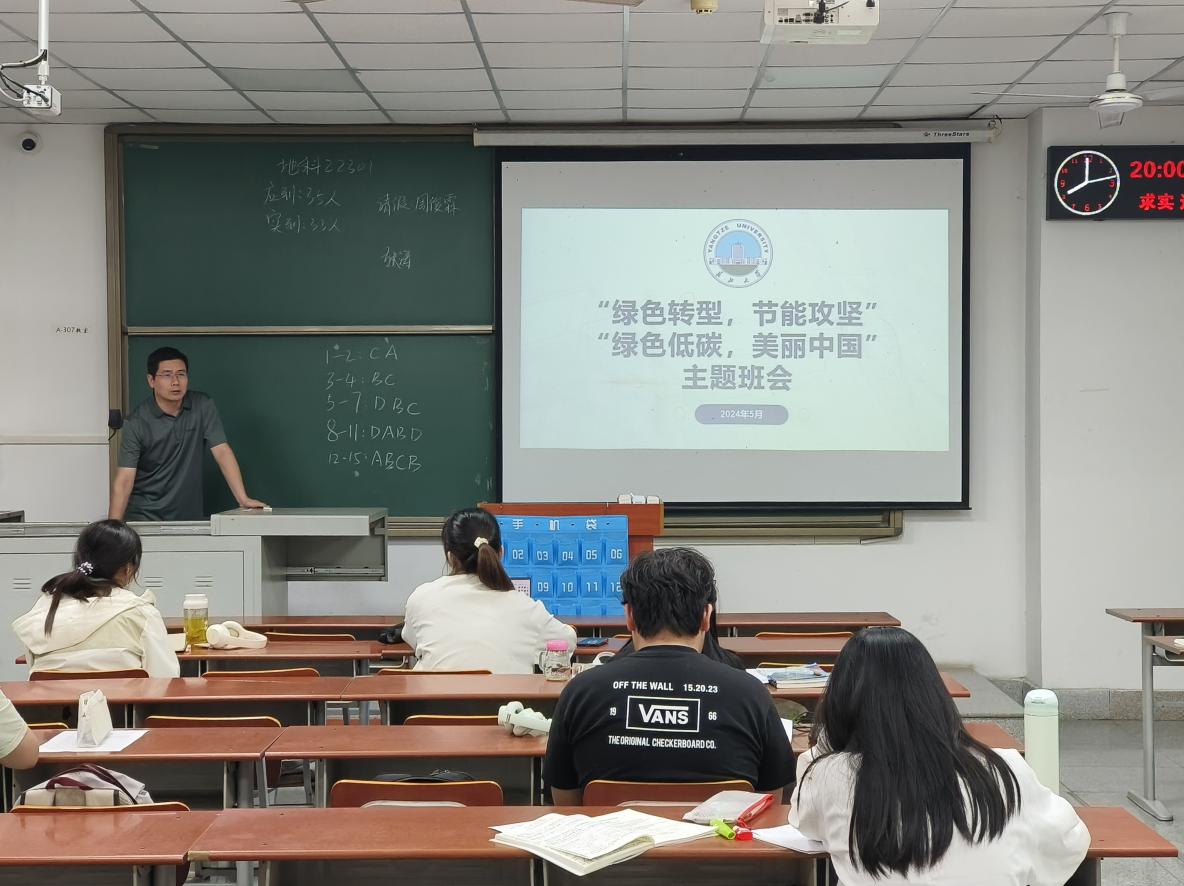 (通讯员 王晗)为深入贯彻习近平生态文明思想,聚焦绿色低碳发展融入国民教育体系,进一步做好节约能源资源宣传教育工作,增强广大学生的节能意识和责任意识。金碧娱乐场 于5月13日至19日组织各班级开展以“绿色转型,节能攻坚,绿色低碳,美丽中国。”为主题的教育班会,会议由班主任主持。