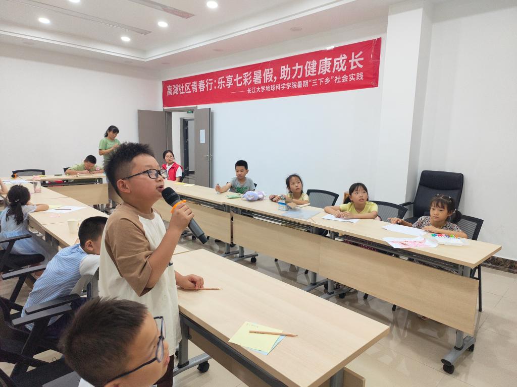“锄禾日当午,汗滴禾下土……”讲座从小朋友们齐声背诵李绅的《悯农》开始。实践队员戴佩为孩子们耐心讲解当下粮食状况,以小朋友们的平均体重为单位“1”,清晰地展现了全球全年人均浪费食物公斤数之庞大。“荆楚大地,鱼米之乡”戴佩同学特别向小朋友介绍了湖北的粮食和水产生产养殖情况,并详细讲解了粮食的生产过程,从播种、施肥、灌溉到收割、加工,每一个环节都凝聚着农民们的辛勤汗水和无数人的努力。
