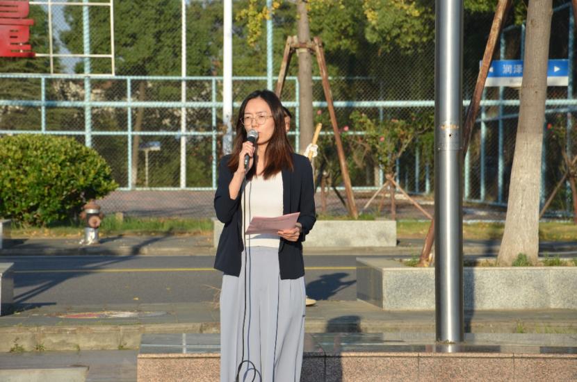 紧接着,学工办主任王红桥老师进行了国旗下演讲。她说:“家国情怀是我们每个人心中最柔软的角落,也是我们最坚强的后盾。只有将个人的命运与国家的命运紧密相连,我们才能在实现个人价值的同时,为祖国的发展贡献更大的力量。” 她鼓励学生们要珍惜时光,努力学习,培养高尚的品德和情操,以实际行动践行爱国之志。王红桥老师的演讲深入浅出,富有感染力,赢得了师生们的热烈掌声。她的话语如同一盏明灯,照亮了学生们前行的道路,让他们更加明确了自己的责任和使命。