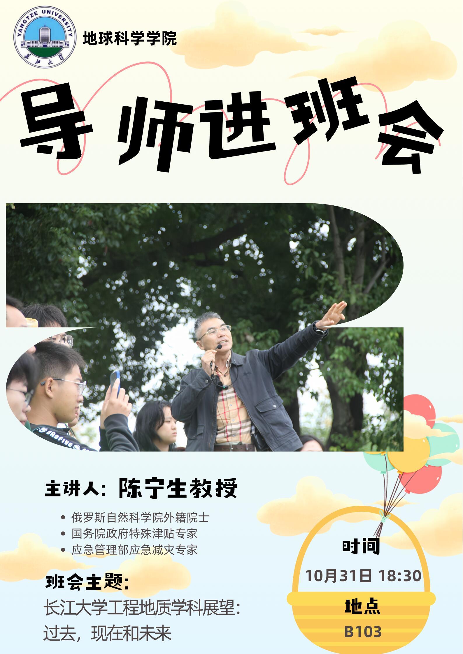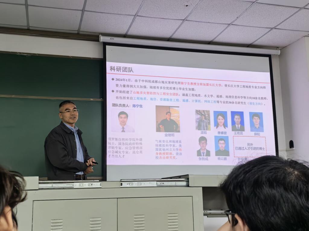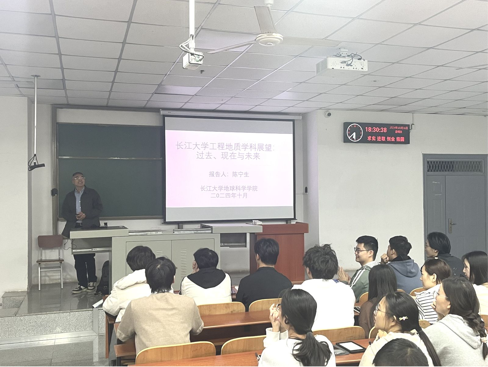 陈宁生教授做客“导师进班会”系列活动,在武教B103教室开展了题为“长江大学工程地质学科展望——过去、现在和未来”的主题班会。陈教授团队教师、22和23级地质系全体本科生参会,现场掌声雷动,气氛热烈。