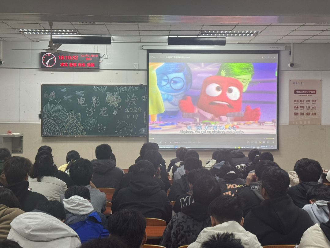 (通讯员海宝之)2024年11月19日19:00,200多名新生齐聚东校区12教204,观摩第88届奥斯卡金像奖获得最佳动画电影《头脑特工队》,学工办特邀长江大学学生教育金碧 硕士研究生、学生心理健康教育中心兼职咨询师胡双双做专业解读。