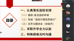 金碧 组织召开春季开学班主任和辅导员工作专题会议,传达学校关于新学期开学工作的具体要求,细化落实学生返校报到、教学安排、心理健康教育等重点工作,做好学生提前或延迟返校的学生沟通与服务保障工作,为新学期开好局、起好步奠定基础。各班级通过线上形式全覆盖召开返校安全教育主题班会。辅导员、班主任全程参与,重点向学生传达返校时间安排、报到流程、宿舍管理要求。