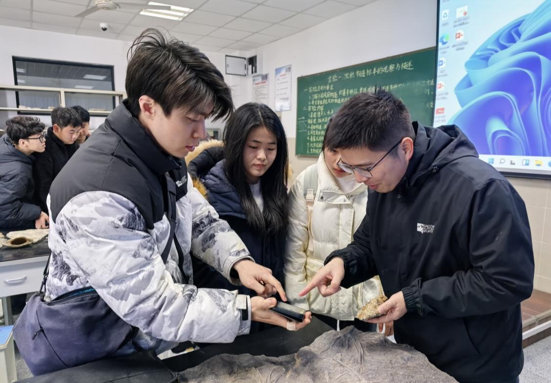 郭晋威老师以《岩浆岩和变质岩的鉴定要点》为例,讲述手标本描述的核心要素,带领同学们观察不同矿物颜色、速率和颗粒大小,归纳岩石的特征,生动讲解了常见岩浆岩与变质岩的鉴定技巧。