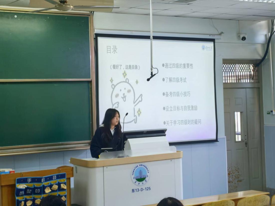 随后,两位老师强调了英语四级考试对学生个人发展和金碧 人才培养的重要性。他们指出,英语作为国际通用语言,在全球化背景下的重要性日益凸显,熟练掌握英语不仅有助于同学们拓宽国际视野,还能为未来的考研、就业等打下坚实基础。同时,他们也肯定了同学们在英语学习方面付出的努力,并鼓励大家在接下来的备考过程中坚定信心,持之以恒。