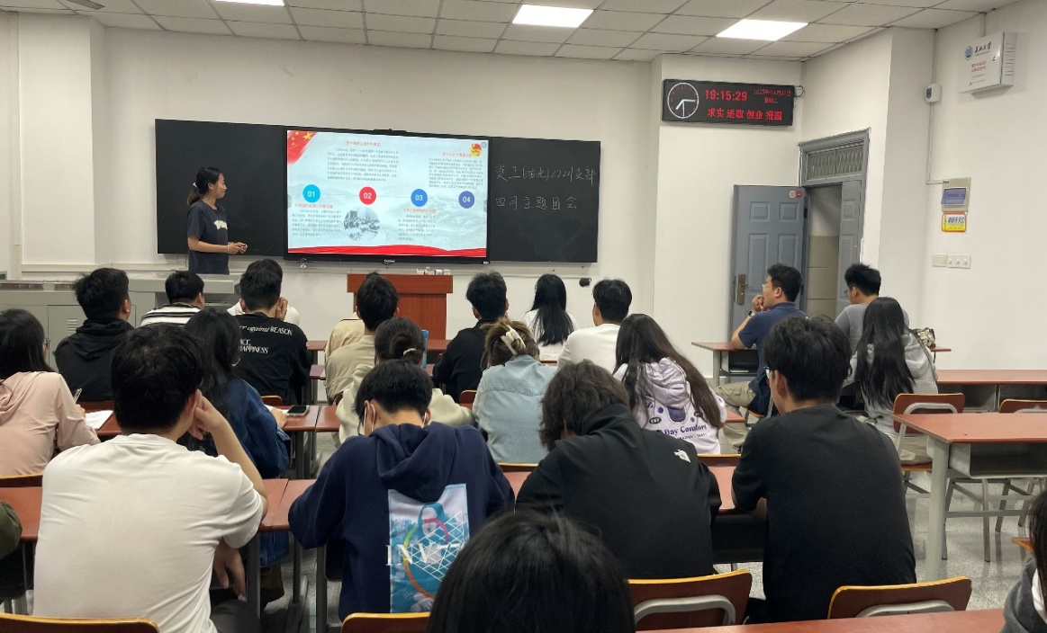 团支书纪思源首先解读了中央八项规定精神,结合案例分析,强调纪律的重要性。接着围绕“青年在科技强国建设中的使命与担当”这一主题,动员大家立志以专业知识助力科技强国建设。