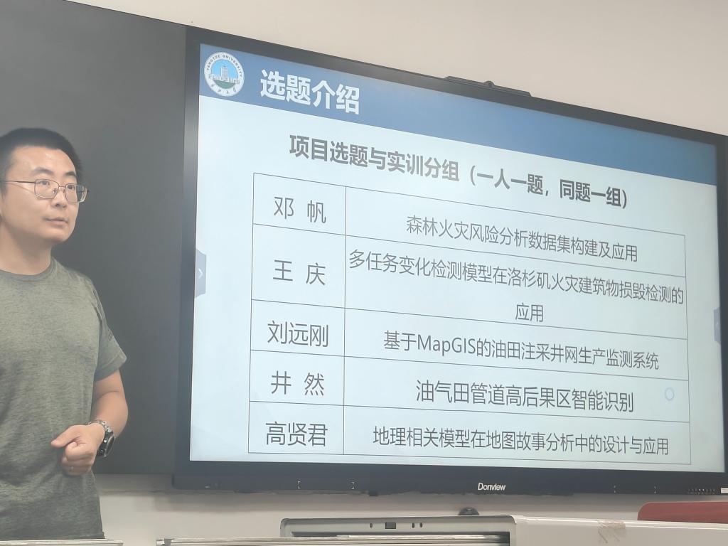 两周在校集中学习结束后,同学们线上学习不停步,各项目持续深化,远程讨论与协作成为常态。刘远刚老师指导小组基于前沿技术构建油田注采井网监测预警系统,通过定期线上会议协调接口兼容与模型优化,实现了从数据管理到智能预警的全流程开发;邓帆老师小组整合多源地理数据,构建森林火灾风险数据集,为灾害预警提供数据支撑;高贤君老师引导学生探索地理模型与地图叙事的融合应用,提升理论结合实践的能力。目前,各组已进入总结阶段,即将返校进行成果汇报与经验交流。