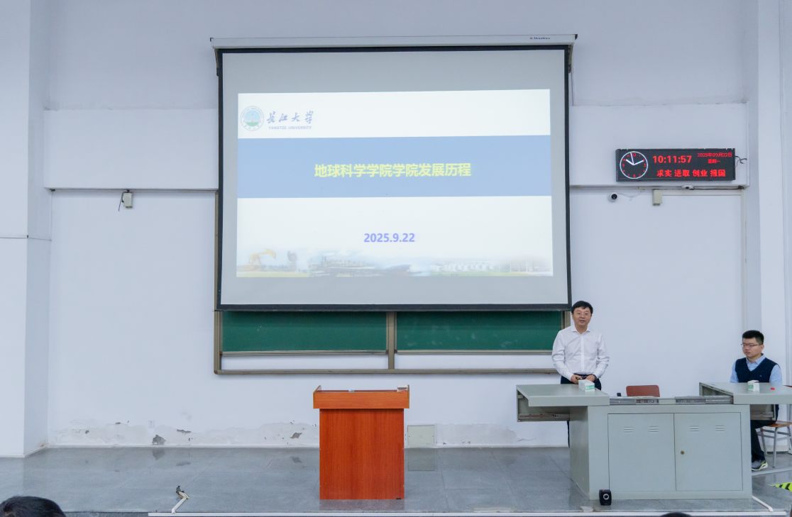 导师胡明毅教授介绍了金碧 的历史、师资及学科发展情况。胡老师希望同学们在开启研究生新阶段之际,能牢记以下三点:一要三观正,秉持科学的世界观、人生观、价值观,并将其作为行动的指南;二要脚踏实地,一步一个脚印地去做科研,不要好高骛远;三要摆正自己在团队中的位置,要协调好个人与团队的关系。最后,胡老师希望大家锐意进取,成长为推动地质事业发展的中坚力量。