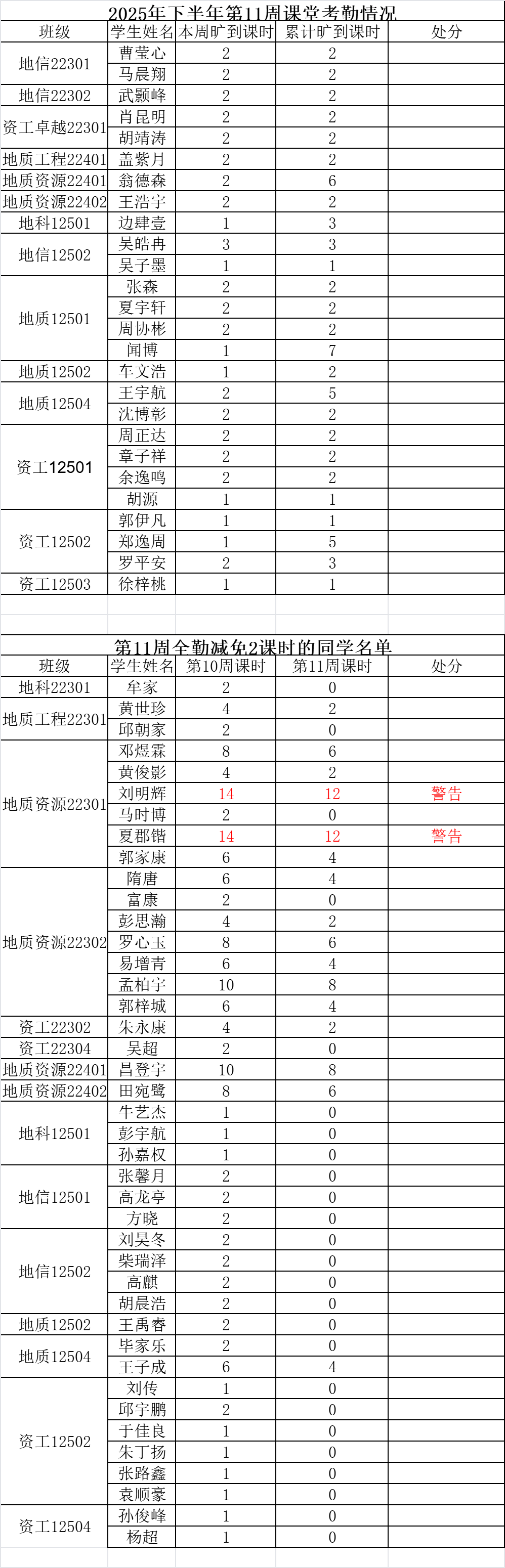 注:若学生某周存在旷课记录,但次周所有课程均正常到课(无迟到、旷课),则可从该生累计旷课课时中减免 2学时。