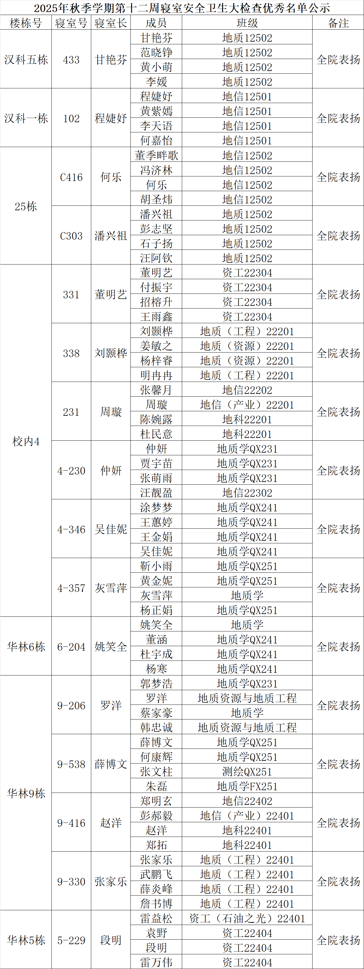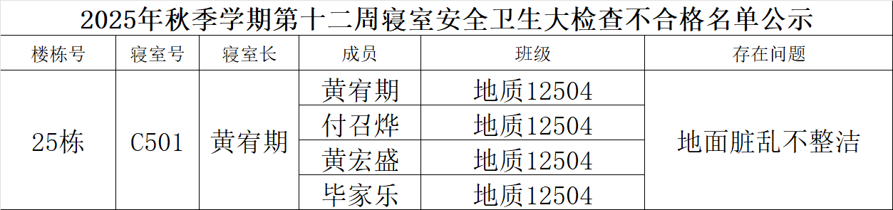 关于2025-2026学年第一学期第12周寝室安全卫生大检查情况的通报