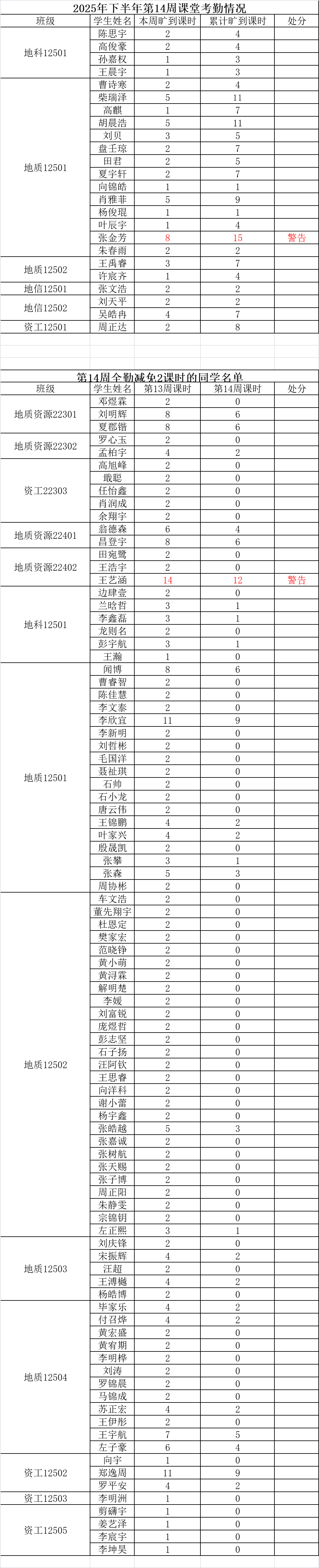 持续开展常态化课堂考勤工作。现将第十四周考勤情况通报如下: