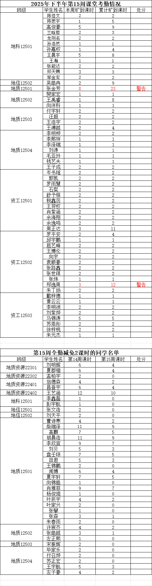 持续开展常态化课堂考勤工作。现将第十五周考勤情况通报如下: