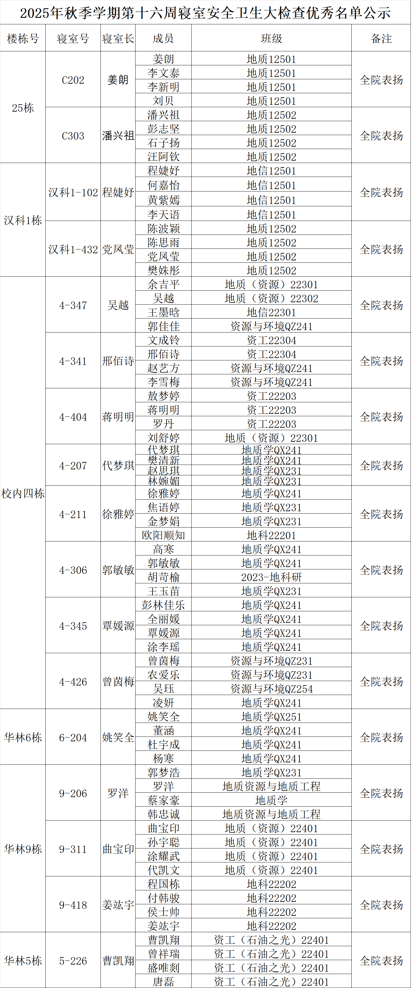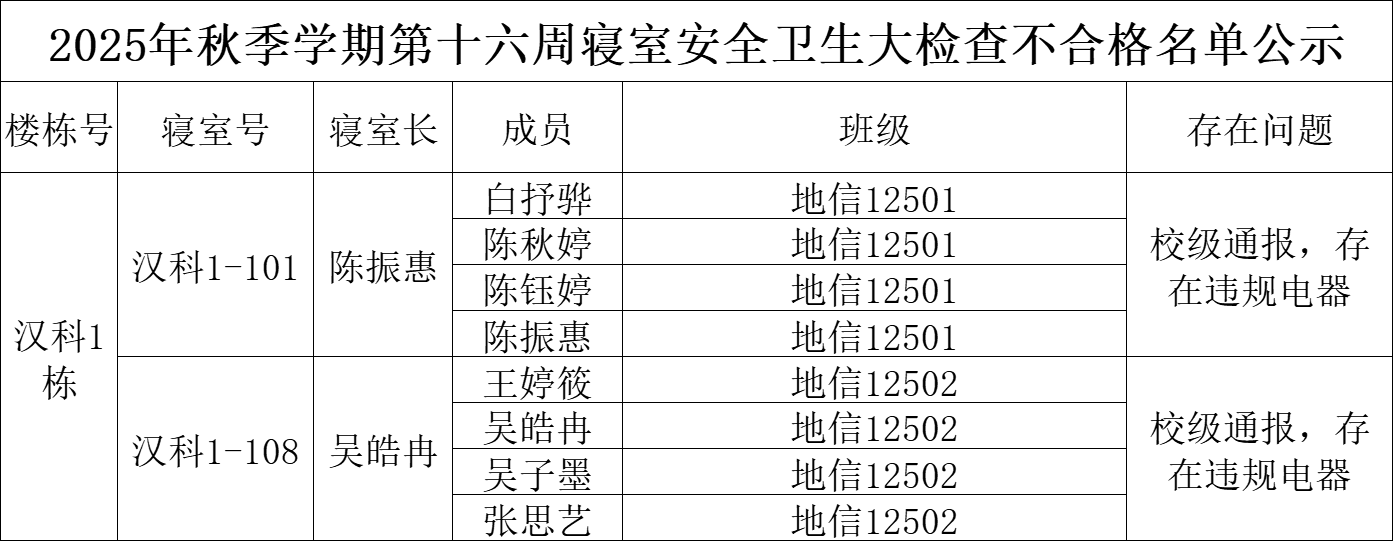 于12月25日开展了第16周学生宿舍自查工作,现将检查情况通报如下