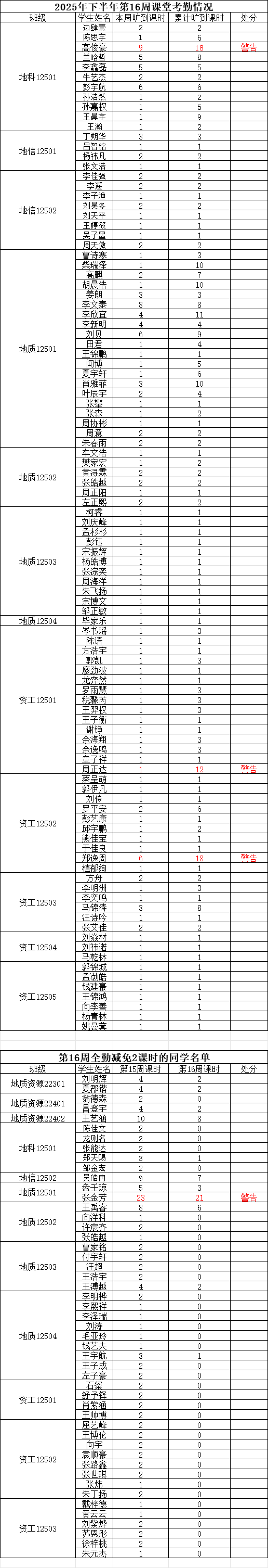 持续开展常态化课堂考勤工作。现将第十六周考勤情况通报如下: