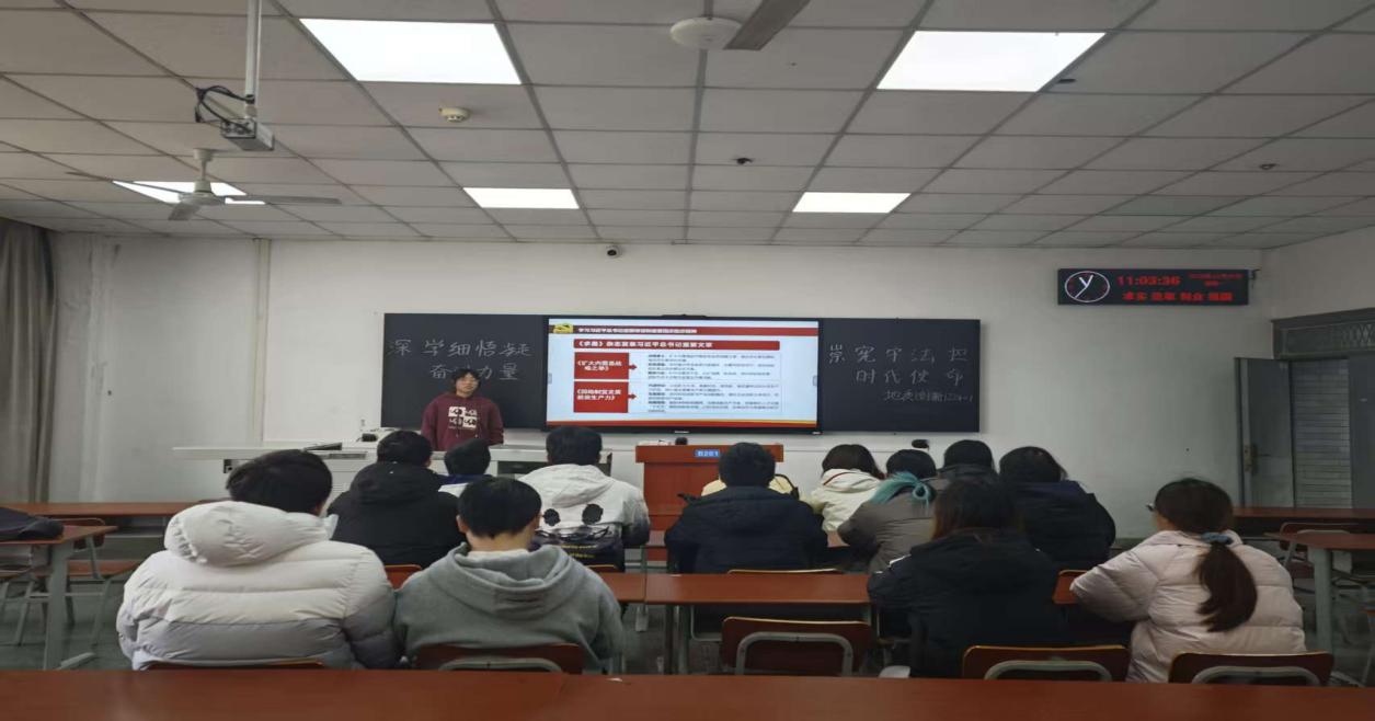 地创22401支部开展“深学细悟凝奋进力量,崇宪守法担时代使命”主题团会 (通讯员吕秋艳)为深入学习贯彻党的二十届四中全会精神,紧扣国家宪法日与“宪法宣传周”普法要求,12月25日,金碧娱乐场 地创22401支部在武教A-203开展“深学细悟凝奋进力量,崇宪守法担时代使命”主题团日活动,支部全体团员参与学习交流。 活动伊始,团支书吕秋艳介绍活动背景与核心内容。随后,带领团员系统学习习近平总书记《扩大内需是战略之举》《因地制宜发展新质生产力》等重要文章,以及关于全面依法治国的重要指示。胡婕同学表示“我认识到,国家宏观战略与个人专业发展并非遥不可及。‘新质生产力’的培育与发展,正是我们地质专业学子未来服务国家战略、实现个人价值的重要方向。” 在研讨环节中,团员分组围绕“如何以专业助力学校‘双一流’建设”展开交流。秦豪阳同学分享感悟“我们在专业学习中应当追求精益求精,积极参与学科竞赛,主动参与志愿服务等校园建设活动,为学校‘双一流’建设添砖加瓦。” 法治教育环节中,通过播放宪法宣传短片等活动,讲解与青年密切相关的法律知识,结合校园贷、网络诈骗等典型案例,剖析依法维权的方法路径。肖政银同学表示“通过对这些真实案例的了解,我深刻认识到法律不仅是行为的规范,更是权益的保障。作为大学生,我们应自觉尊法学法守法用法,尤其在面对新型网络诈骗时,更要保持清醒头脑,善于运用法律武器维护自身合法权益。” 此次活动通过理论领学、专题研讨等形式,让团员在学思践悟中深化对党的创新理论与全会精神的理解,强化宪法意识与法治素养。团员们表示,将以此次活动为契机,把学习成果转化为专业学习与实践行动的动力,用实际行动践行新时代青年的使命与责任。 (审核 冯舒 编辑 毕浩浩)