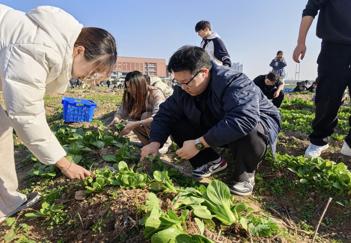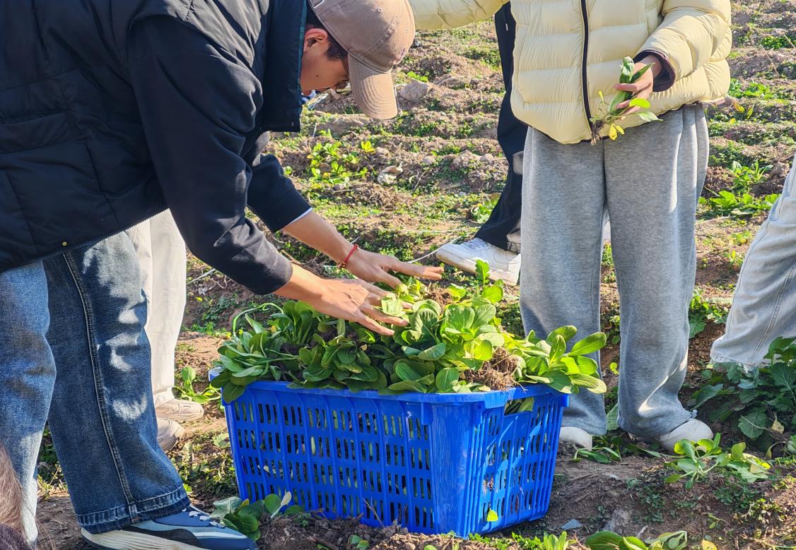 活动中,学生们分工明确、配合默契,共同完成了责任田内上海青、生菜等当季作物的采收、分拣、清理及搬运工作。尽管天气寒冷,同学们依然热情高涨,劳动场面井然有序。大家一边劳作,一边围绕作物生长特性、种植技术和专业学习心得展开交流,在实践与对话中深化了对农业生产和劳动价值的理解。
