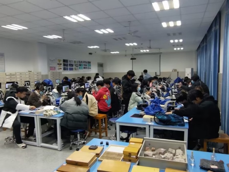 11月29日晚6点,同学们在实验楼A406举行了“地质标本鉴定”比赛。同学们分工合作,耐心细致地用显微镜观察常见岩石薄片和手表本,并对岩石各类属性进行积极讨论与分析,撰写实验报告,配合十分默契。最后大家以小队为单位,提交报告给评委老师进行评分。