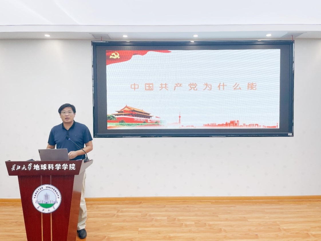 会议最后,全院教职工进行了集中政治理论学习,党委书记杨全辉结合金碧 工作实际,以“中国共产党为什么能”为题,给全院教职工上了一堂专题党课。