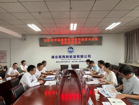 毕业生生源以及此次访企拓岗促就业专项行动与单位进行交流;石油系副主任饶松教授,地质系支部书记吕奇奇副教授、温韬副教授分别汇报了自己的研究方向并分别围绕大队在宜昌、恩施等地区的地热资源勘探、开发,鄂西页岩气勘探,地质灾害防治等内容与单位展开深入交流。