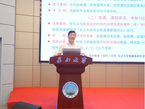 随后,副院长胡忠贵详细解析与说明了学籍管理办法及本科人才培养方案,帮助本科新生及家长建立对专业定位的基本认知,他特别提到了专业实习基地、学科竞赛等专业特色活动,提醒家长帮助学生做好在校期间的学习规划。
