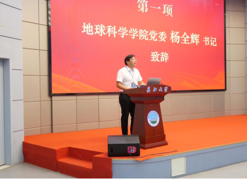 地质22301班夏郡锴的父亲作为新生家长代表发言,他表示很高兴把孩子送回母校培养,并分享了自己家庭教育中的心得体会,寄语孩子们健康成长、快乐成才,将来为国家的能源建设贡献一份力量。