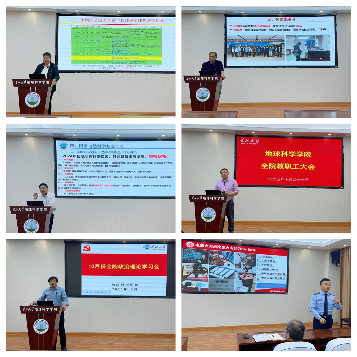 副院长李功权通报金碧 工会工作、实验室安全管理、沉积模拟实验的建设以及消防安全工作,并呼吁金碧 教师要利用实验室开展科研工作。
