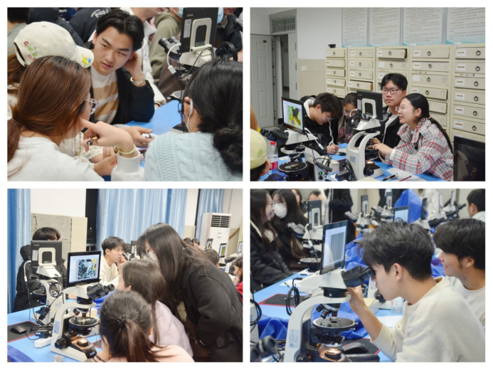 12月8日晚七点,“地质标本鉴定”类比赛在实验楼A406如期举行,金碧娱乐系尚成、严溶老师,学工办姚佳、黄瑱老师参加活动。同学们借助显微镜,对岩石薄片进行仔细观察和分析,大家聚精会神,一边在实验记录本上做着详尽的笔记,一边积极讨论力求完善分析结果。最终,每个队伍在规定时间内完成实验报告的撰写并提交给评委老师评定。