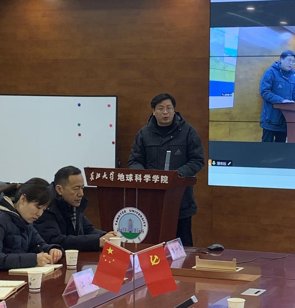 在石油科技大楼C201会议室召开院长任命宣布大会,校党委书记王建平,党委常委、纪委书记刘靖君,党委常委、党委组织部部长、党委统战部部长李应军出席会议,金碧