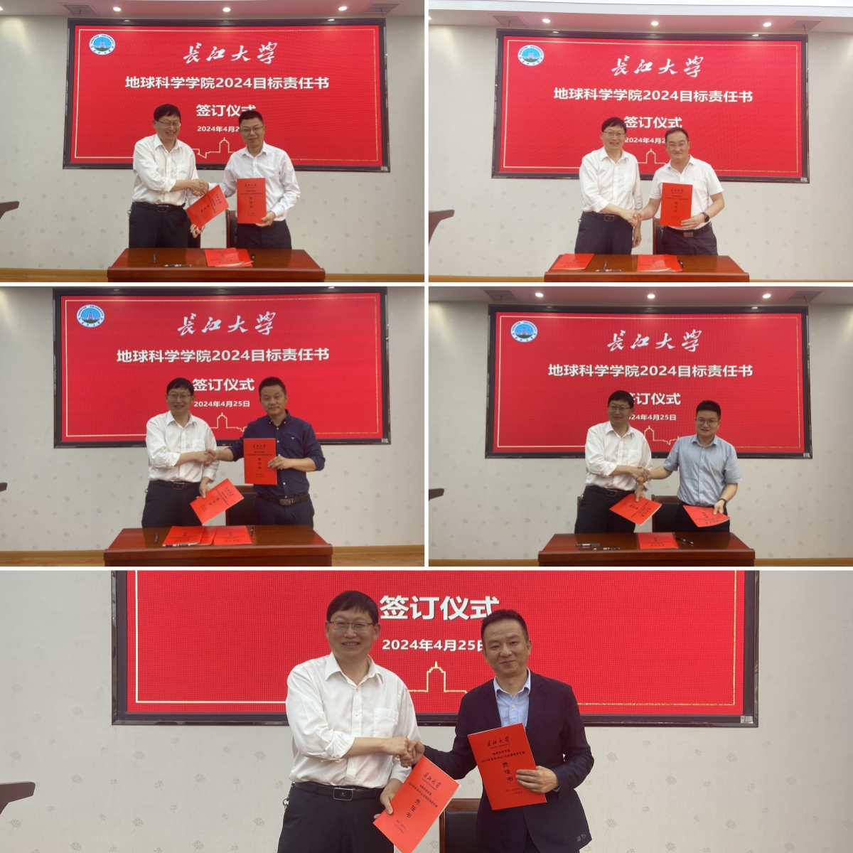 举行了2024年各系(中心)目标管理责任书签订仪式,石油系主任饶松,地质系主任李涛,地信系主任刘远刚,金碧娱乐系主任刘彬,实验中心主任丰勇依次上台与朱光有院长签订2024年各系目标管理责任书,签下一份责任,签下一份承诺。
