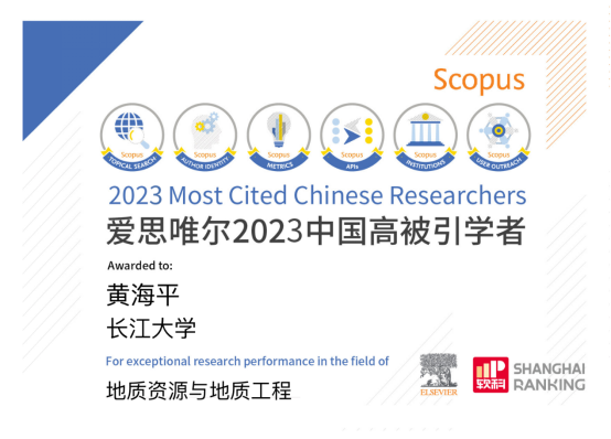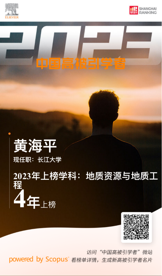 特聘专家黄海平教授在地质资源与地质工程学科上榜。