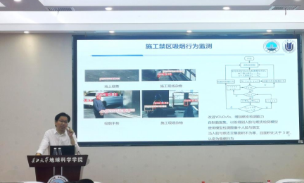 刘学锋教授的报告从人工智能的发展历史和深度学习的基本原理入手,结合遥感目标检测领域的实际应用需求,详细介绍了他的研究团队在这一领域的主要工作和进展。他分享了一系列生动翔实的案例,包括近红外图像彩色化、无人机在线目标检测、电气盘柜智能巡检、超高层建筑施工安全智能化监理等。刘教授的报告内容丰富,深入浅出,这些案例展示了人工智能技术在遥感中的广泛应用,使在场的师生受益匪浅。