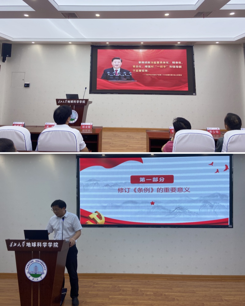 党委书记杨全辉为全院教职工讲党课,向全院教职工解读了《中国共产党纪律处分条例》,带领全院教职员工进行政治理论学习,组织全院教职工观看警示教育片,要求党员领导干部、全院教职工认真学习《条例》,做到学纪、知纪、明纪、守纪。