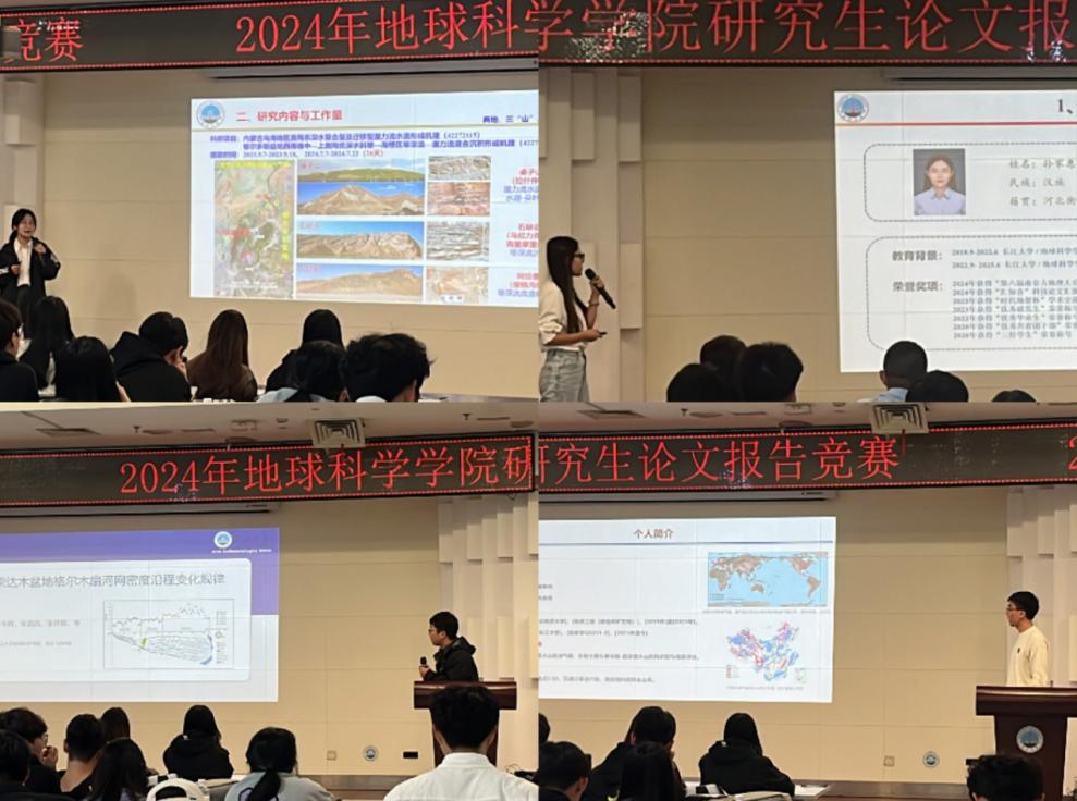 王林同学从物源出发,结合研究区具体环境分析坳陷湖盆细粒重力流沉积特征、王延达同学建立双壳类数据库,以全新视角确定了中生代海洋革命的开始时间始于晚三叠世、张跃同学创新性的以动态模型指导逐点金字塔点云语义分割架构。从储层沉积到非常规油气,从地球化学分析到遥感水文,选手们主题丰富、条理清晰的汇报,引人入胜。评委们的提问与点评更是“一针见血”,饶松教授提醒大家题目要凝练,突出核心问题,不同分流河道是如何形成的,它们又是怎么作用到成岩作用的,对储层预测有何帮助等提问,引发同学们的思考。陈梅老师就报告中研究区段是否受明显底流作用,引导同学们进一步明确各种因素对沉积相成因的影响,并表达了对大家所汇报的科研成果的肯定。王喜鑫教授提醒黄婉滢同学把高寒山区岩石脆性评价方法同油气开发相结合,并对比其他区域的脆性评价方法有何差异性,其中蕴含的研究同生产需要结合、建立对比关系的思维,给在座研究生扩展了新思路。刘远刚教授借苏振峰同学关于水体提取分析的汇报,指出掌握一定的水文知识,将遥感技术同水文监测结合,符合目前交叉学科的需要,大有裨益。吴楠教授对魏梦雪同学关于滑坡监测的汇报给予肯定,表示希望大家深入思考研究成果的应用价值,期待大家能真正“把论文写在祖国的大地上”。朱院长以赵国春院士近期的汇报,对同学们提出了新要求,希望大家再接再厉,做出更多的高水平论文。