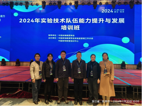 学科建设、人才培养及教学科研提供强有力支撑,11月29日~12月1日,实验中心丰勇、高达、高洁、辛长静、胡九珍和徐艳霞等6名教师赴浙江杭州参加“2024年实验技术队伍能力提升与发展培训班”。