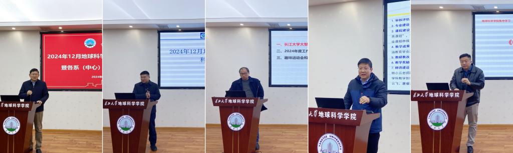 会议第二阶段,各系(中心)主任进行年终述职,石油系主任饶松,地质系主任李涛,金碧娱乐系主任刘彬,地信系主任刘远刚,实验中心主任丰勇依次上台汇报,按照金碧