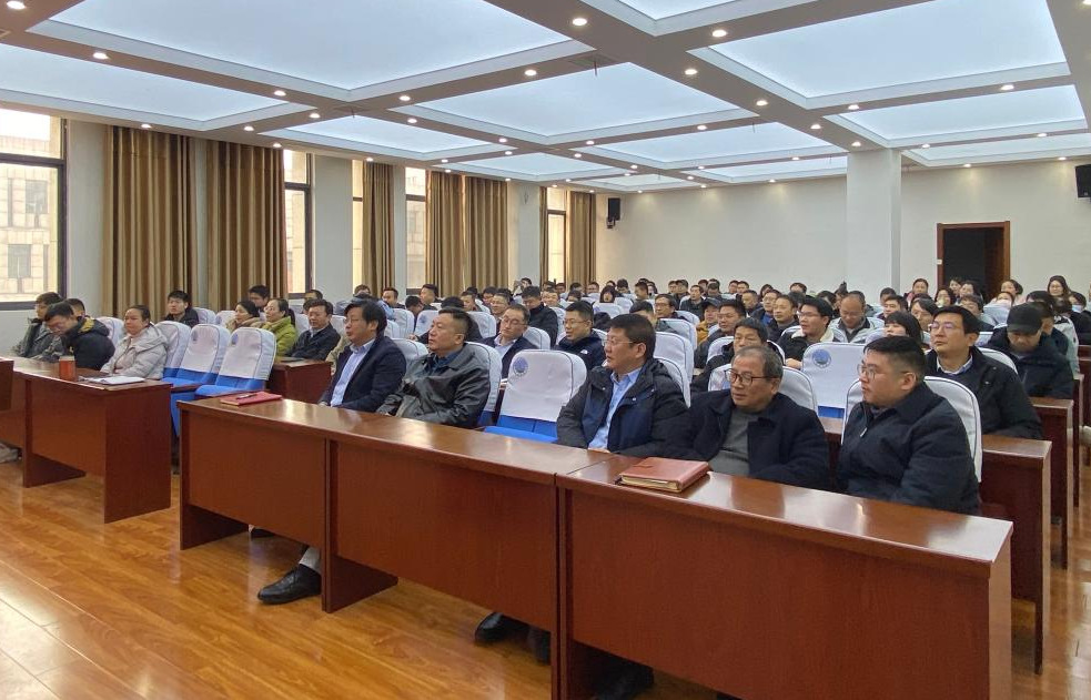 在石油科技大楼C301会议室召开全院教职工大会暨年终总结会,总结复盘本年度金碧