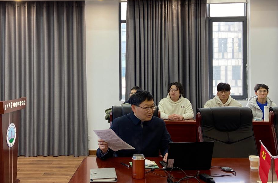 组织拟申报2025年国家自然科学基金项目的教师在石油科技大楼C201会议室,召开基金项目申报技巧与注意事项报告会,报告人为朱光有院长,金碧