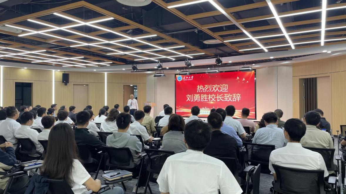 在朱光有主任解读命名深意后,刘勇胜校长登台致辞。他对 “梦溪讲坛” 的命名给予高度赞誉,认为这一名称既承载了我国石油领域的历史文脉,又精准契合学校学科特色,尽显文化底蕴与学术追求。随后,刘勇胜校长深入阐释了学校的战略考量:成立卓越能源研究院、打造 “梦溪讲坛”,核心初衷在于打破学科壁垒,推动不同领域的学术思想碰撞与深度融合,在交叉创新中孕育新的研究增长点;更希望以讲坛为纽带,为长江大学的青年学者 “搭梯子、建平台”,助力他们拓宽学术视野、加速成长成才,最终为学校 “双一流” 建设注入源源不断的活力,为能源领域人才培养与科研创新贡献更大力量。致辞尾声,刘勇胜校长以庄重而激昂的语调,正式宣布 “梦溪讲坛” 启动,现场氛围也随之推向高潮。