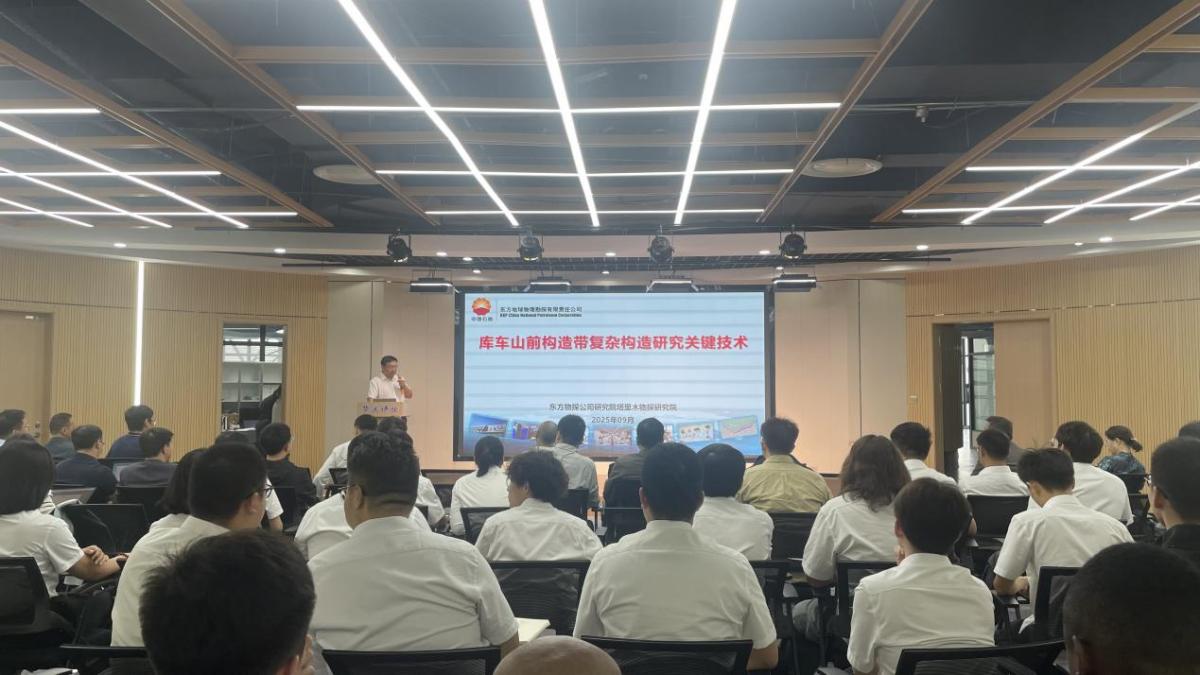 汇报中,马书记以“塔里木盆地库车山前复杂构造研究关键技术”为核心,从五个维度展开解读:一是系统介绍库车山前勘探领域的地质概况与勘探背景;二是剖析区域内油气藏特征与成藏规律;三是分享针对复杂山地条件形成的勘探研究思路;四是详解适配库车地质特点的配套研究技术体系;五是阐述相关技术在实际勘探中的推广应用场景及取得的重大成效。马书记的报告内容紧密结合一线实践,既有理论深度,又具实操指导性,为广大师生开阔了眼界。