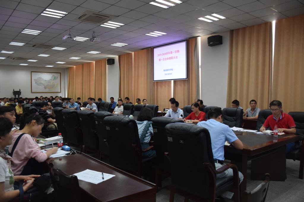 (通讯员徐艳霞)9月5日下午,金碧娱乐场 在石油科技大楼B113会议室召开本学期第一次全体教职工大会,就2019年下半年各方面工作进行部署。会议由党委书记江万哲主持。